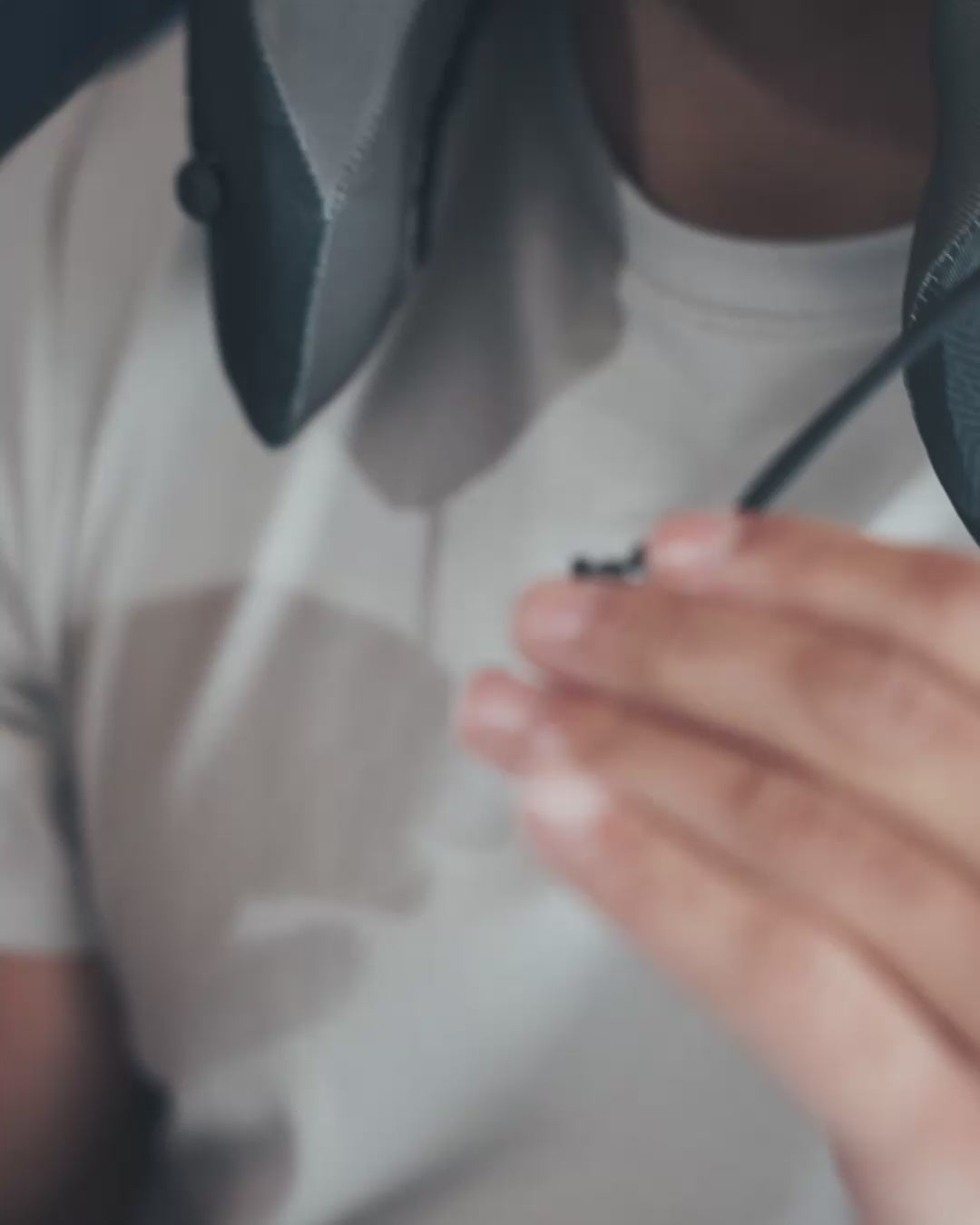 For magnetic toggles, simultaneously push in and hold the buttons on the outside, and then slide the toggle up to tighten or down to loosen. To detach the magnetic clasp, grab the ends of the drawstrings and pull out toward your shoulders. To close the magnetic clasp, bring the two halves together and let the magnet snap them together.