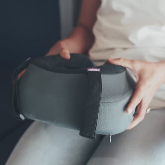 Introducing Evolution S3® — the world’s best engineered neck pillow. Our innovative Seat Strap System eliminates head drop, neck strain and the instinctive "whiplash" response to reopen obstructed airways. Wrap the straps around the headrest area of your plane seat, gaming chair or theater seat to secure your head in place.